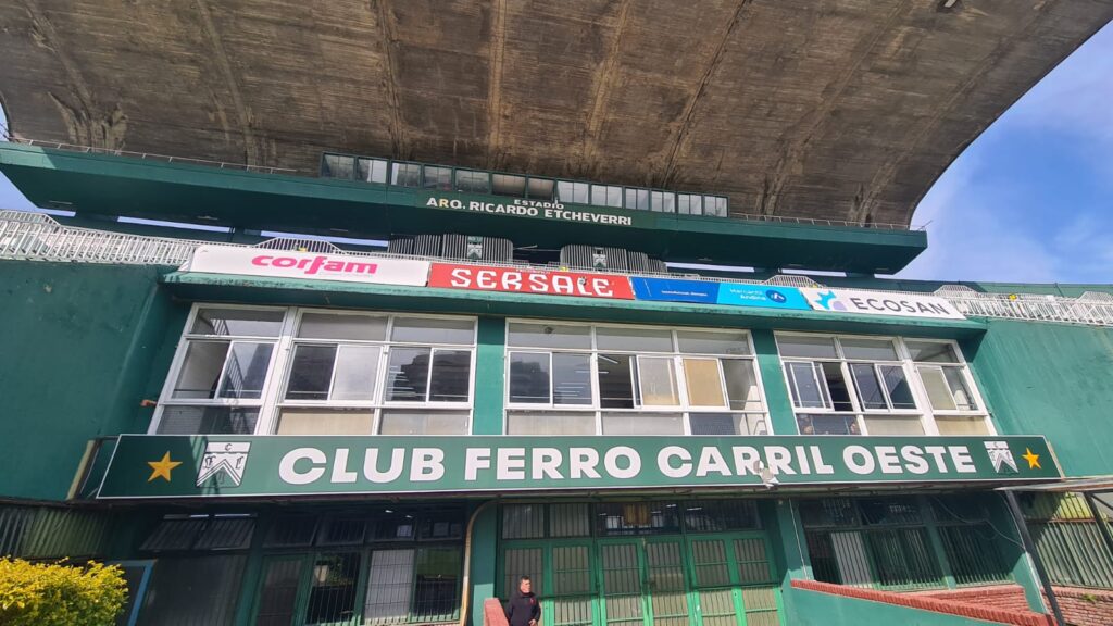 Antes de ir para o jogo, passei no estádio do Ferro Carril Oeste para conhecer as instalações. Em 2023 eu bati na porta, até comprei uma camiseta para um amigo, mas infelizmente não havia a possibilidade de entrar e conhecer o estádio. Desta vez, tive a sorte de me apresentarem um dos responsáveis pela administração do clube, Alexis, que me fez um tour bem rápido pelas instalações.